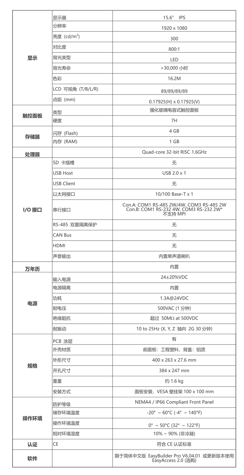 NEMA4 / IP66 前面板防护等级